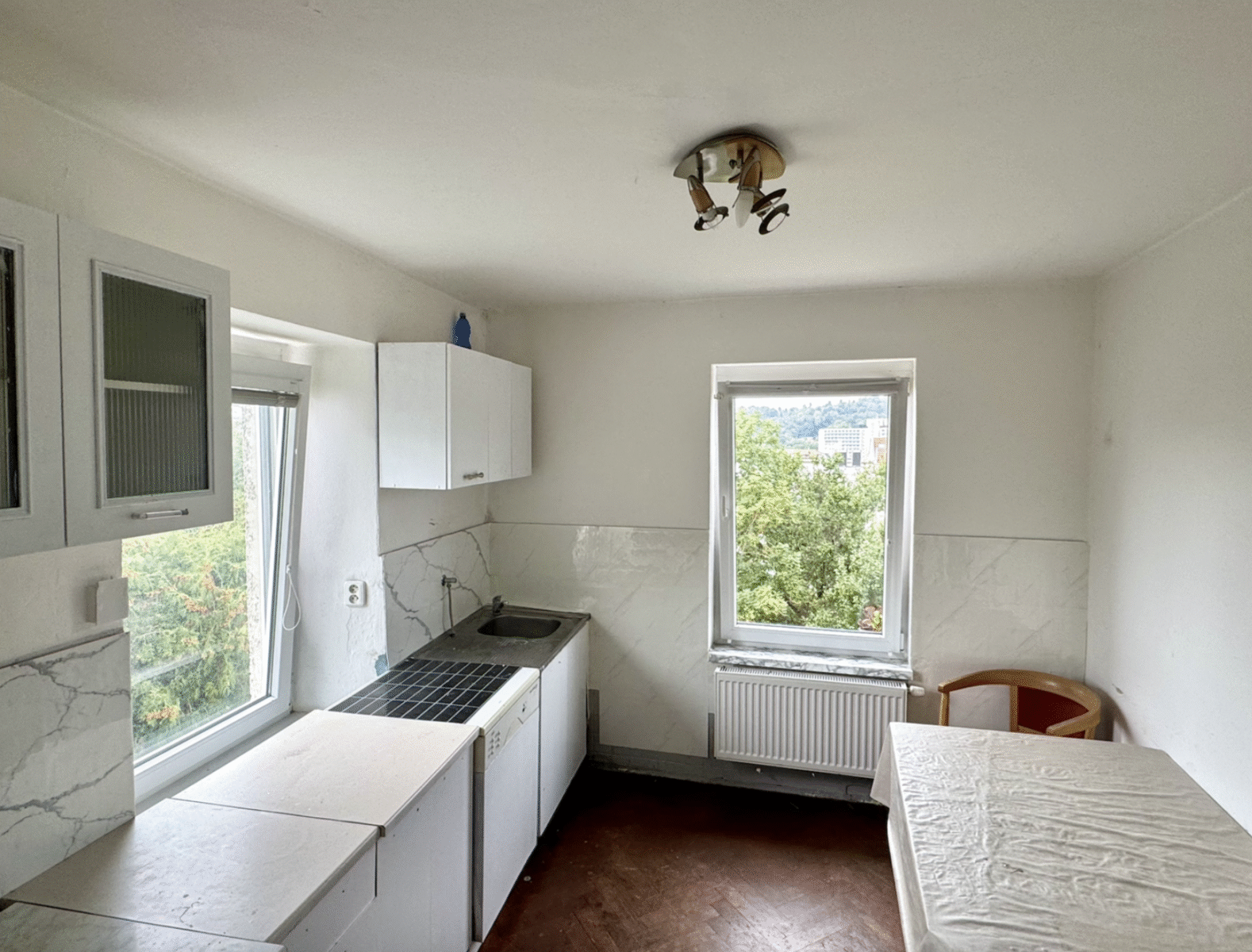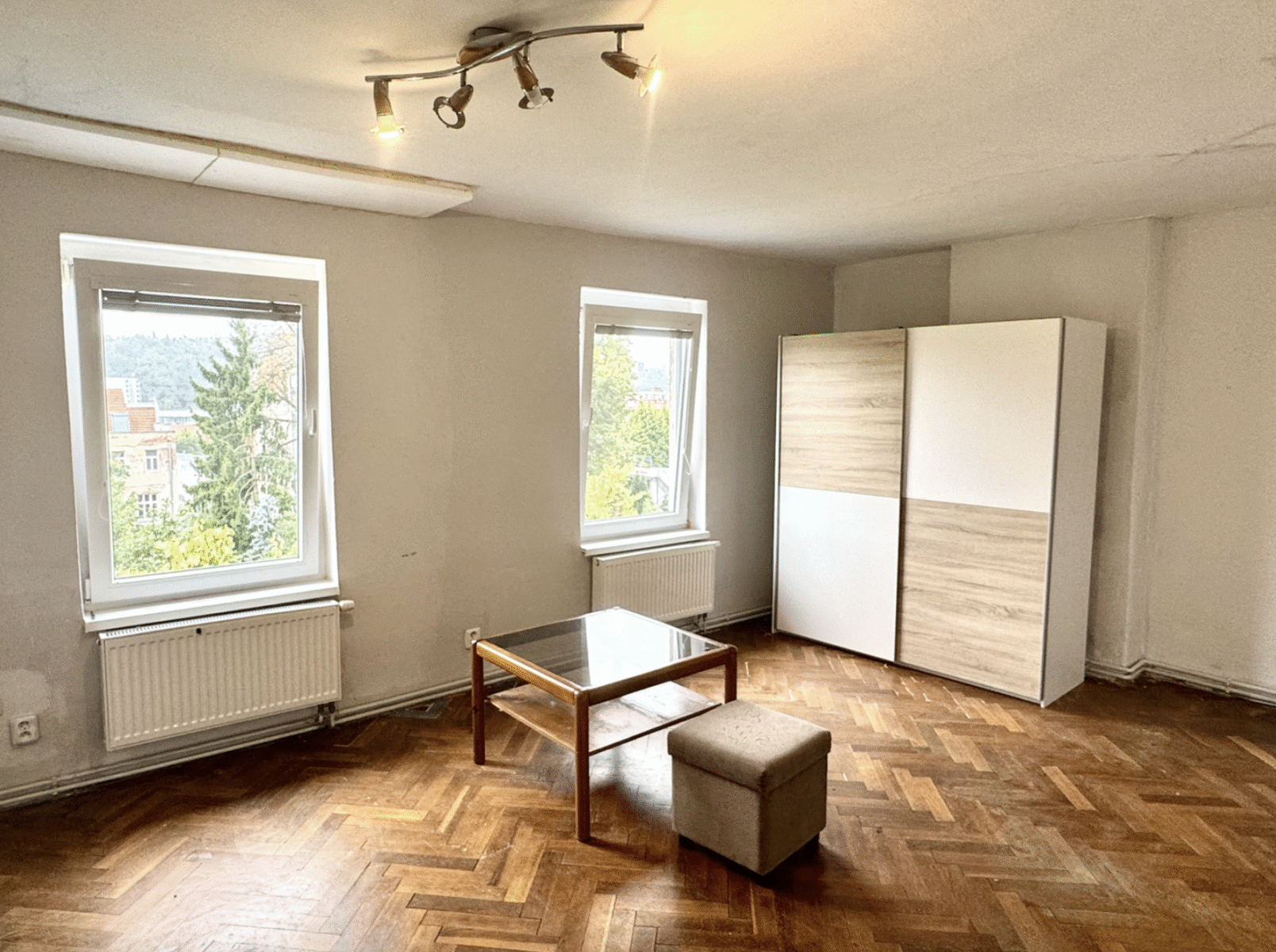 Každé patro tak nabízí vlastní toaletu i prostor pro kuchyň. Interiér je starší, vhodný pro nájemníka, který si bydlení rád doladí podle vlastních představ.