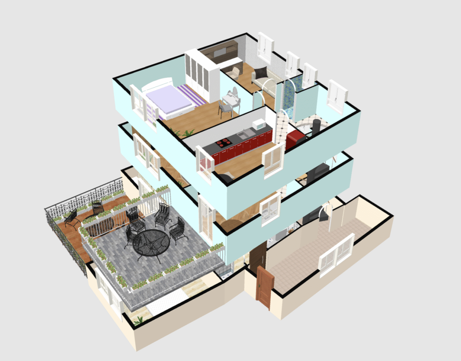 • 3. podlaží: dva samostatné pokoje, kuchyňka a druhá toaleta.