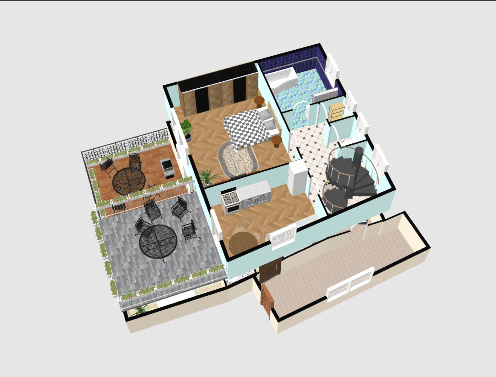 Byt je situován ve 2. a 3. nadzemním podlaží. Přístup vede po točitém schodišti.