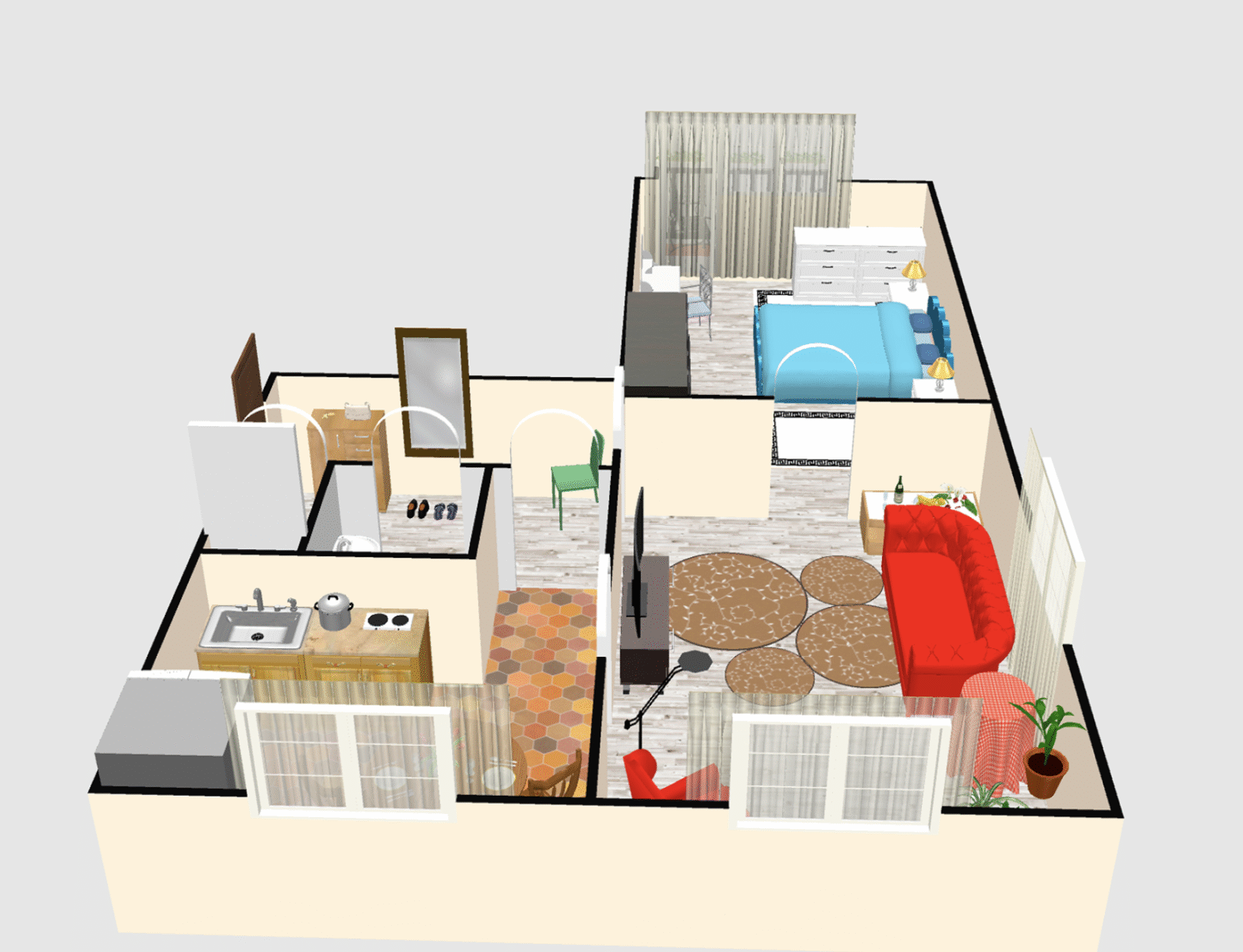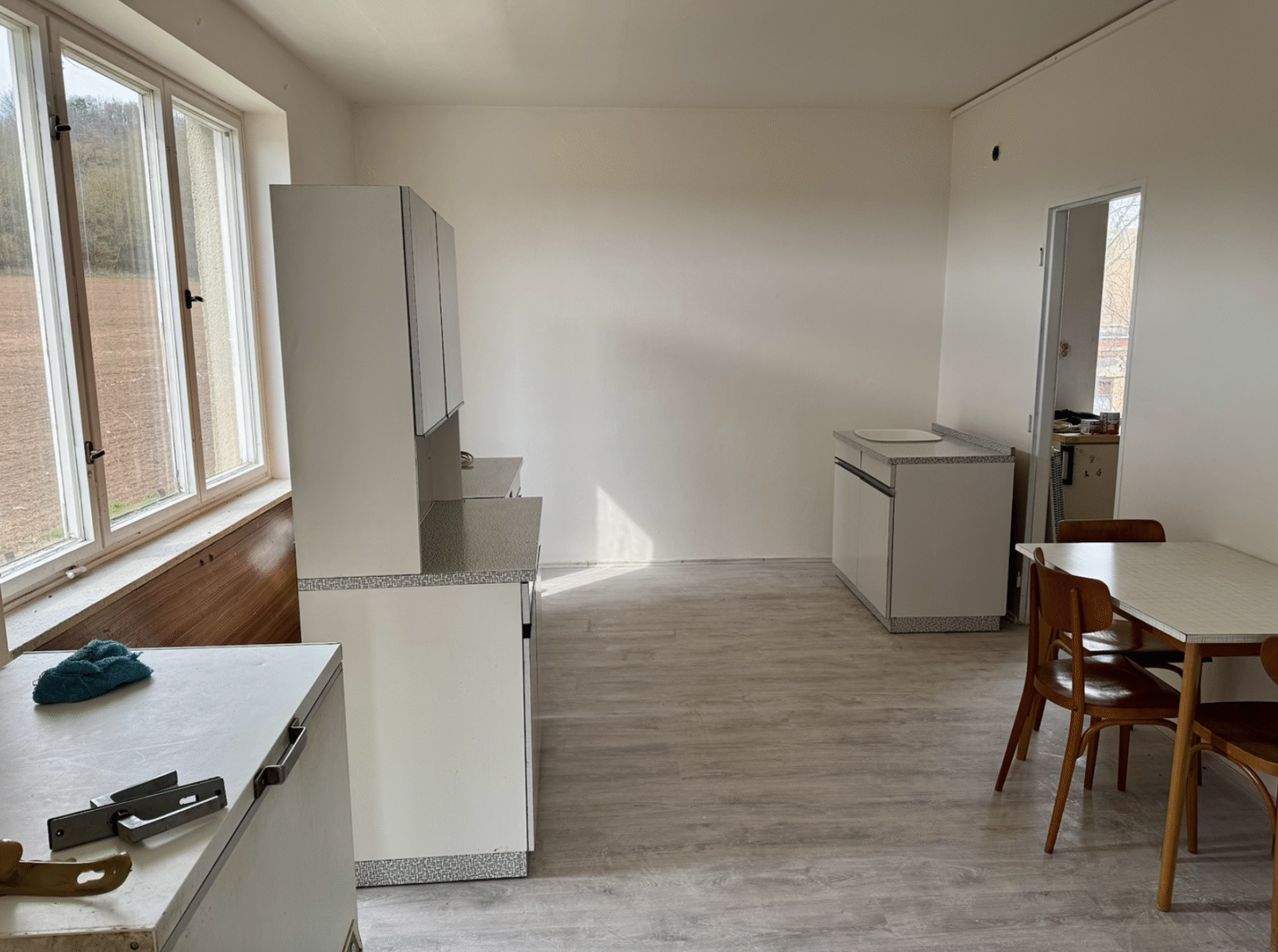 I když nemovitost není kompletně vybavena, je ideální pro šikovný pár, který se nebojí dotvořit si prostředí dle svých představ. Byt je v dobrém stavu, avšak je nutné zrekonstruovat koupelnu i prostor pro kuchyň. Podlahy jsou nové plovoucí, což urychluje možnost nastěhování. Kuchyňská linka je připravena, je však nutné ji přesunout na požadované místo.